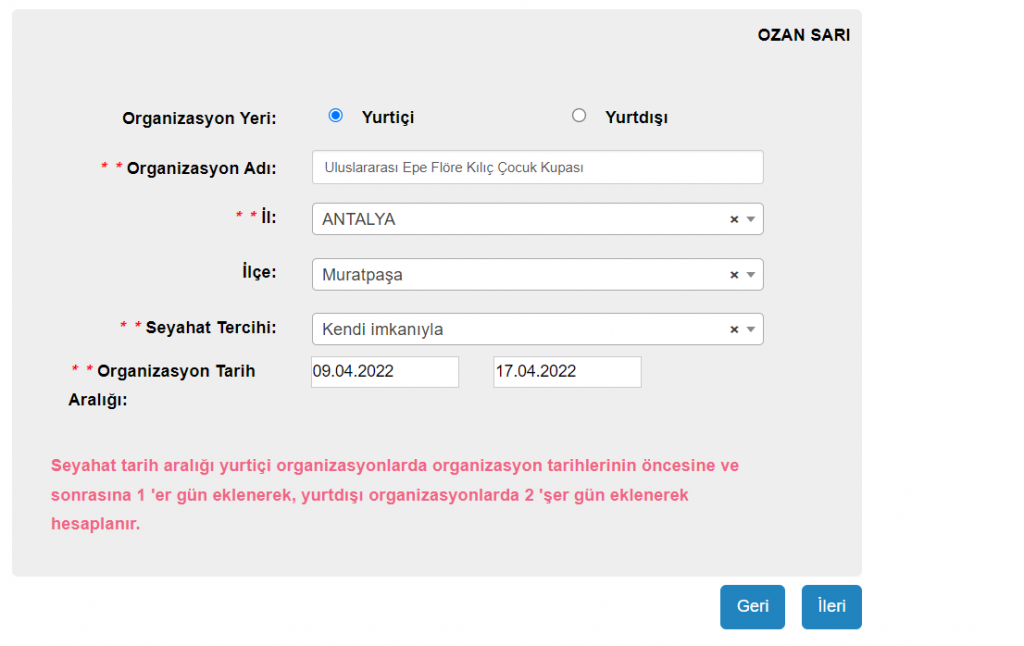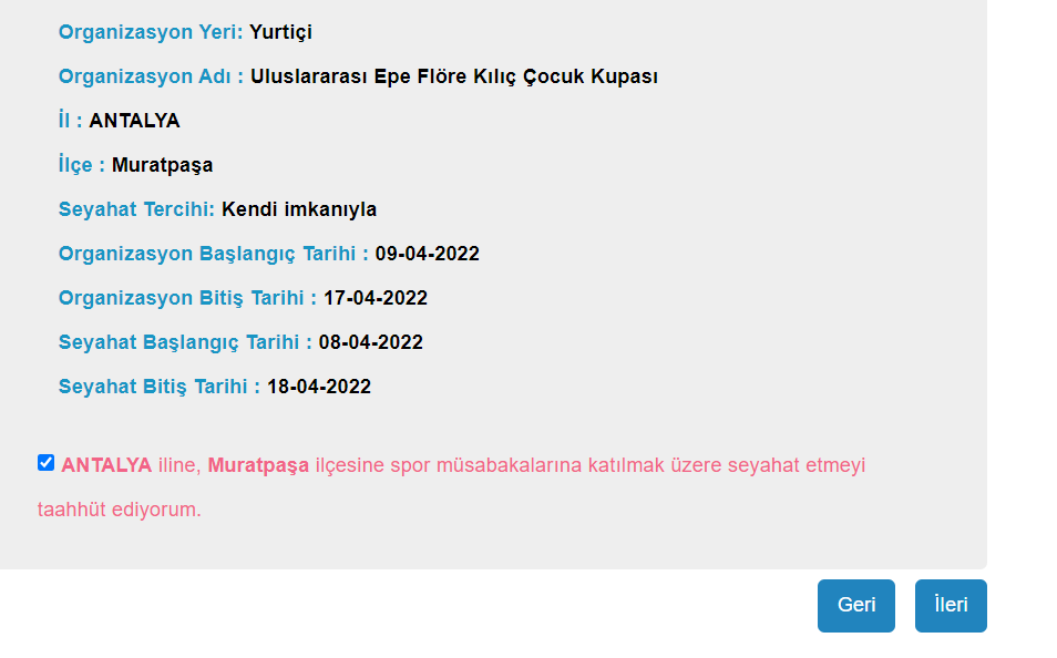 Merhabalar, bildiğiniz gibi amatör sporlarda deplasman müsabakalarına giderken, il müdürlükleri seyahat taahhüt belgesi istemektedir. Bu taahhüt belgesi ister kafile ile ister kendiniz seyahat edin bu taahhüt zorunlu. Bu seyahat izni işlemini artık e-devlet üzerinden gerçekleştirmeniz mümkün.
