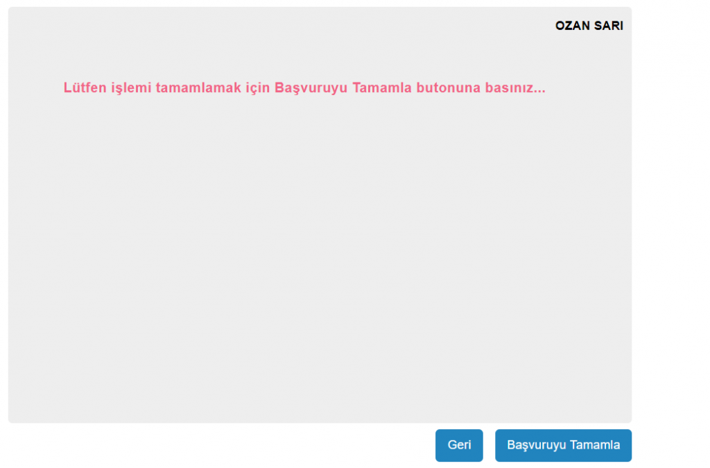 5- Başvuruyu tamamla kısmını onaylıyoruz.
